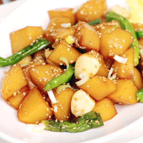 감자조림은 감자를 썰어 양념장에 졸여 만드는 집반찬으로, 단짠의 조화가 일품이에요.