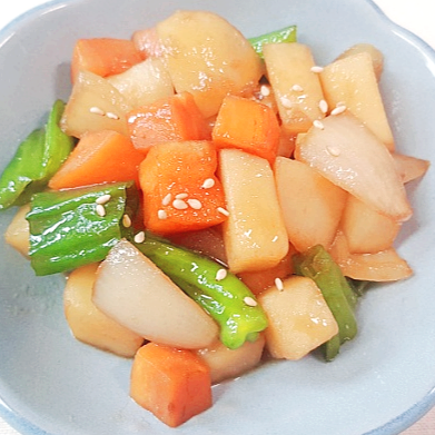 4. 양념이 잘 스며들고 감자가 부드러워졌을 때 통깨를 뿌려 마무리합니다.