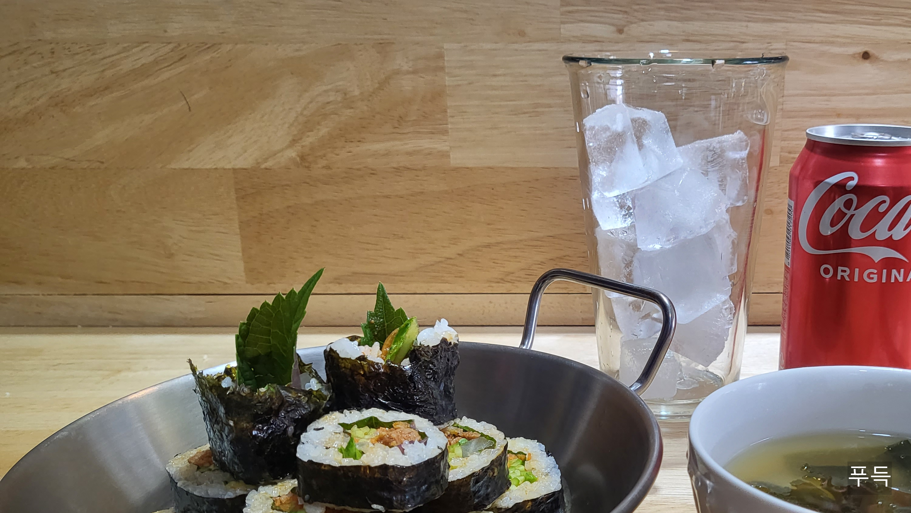 자, 이제 제육김밥도 만들어지고 미소미역국도 만들어졌으니 맛있게 드시면 됩니다.