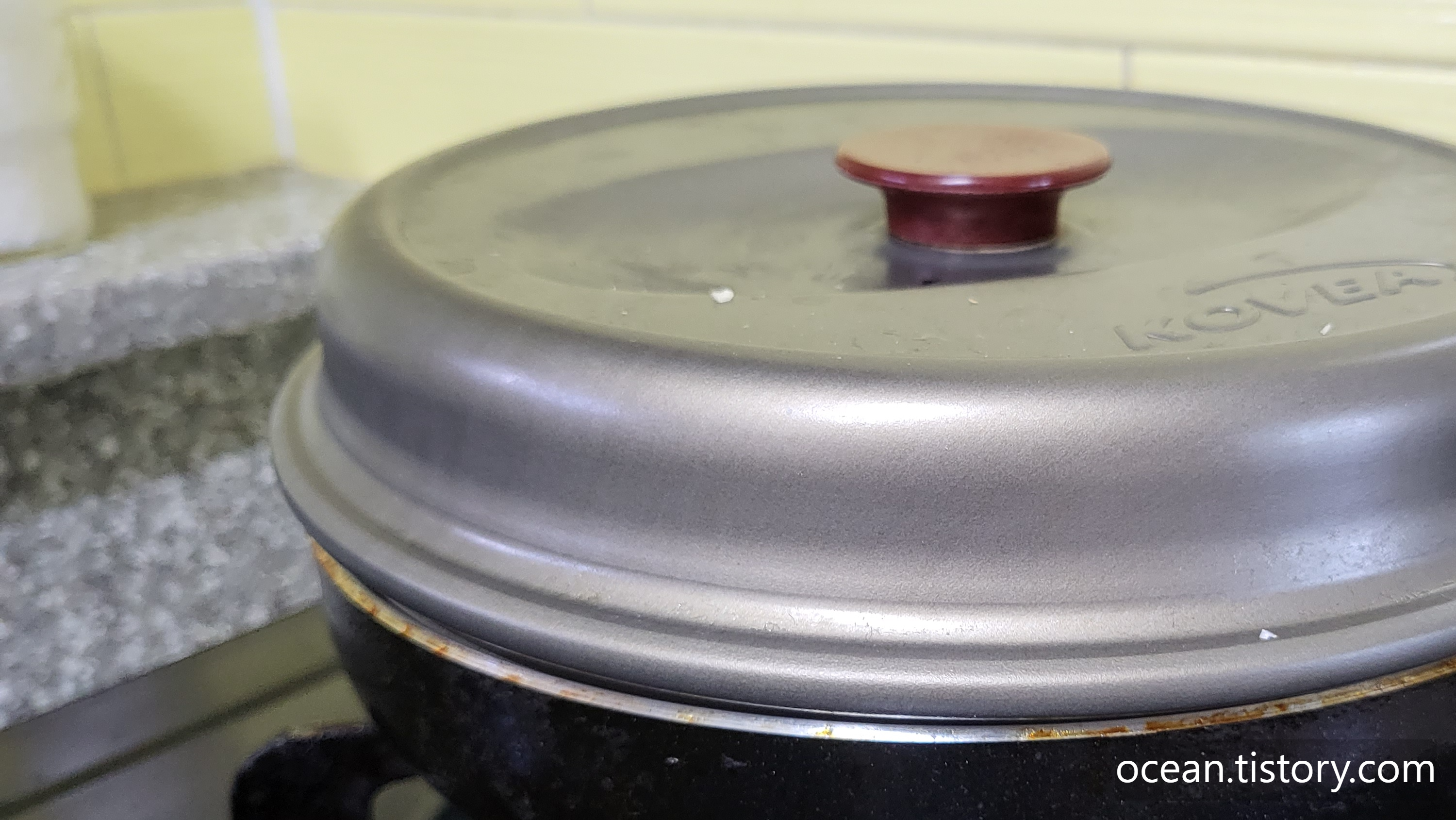 이때 프라이팬에 뚜껑을 씌운다. (중요)