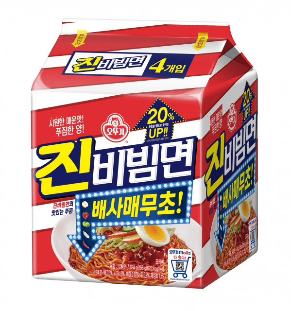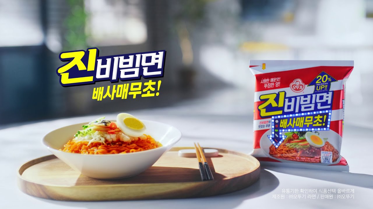 진비빔면은 가수 화사가 선전하는 제품으로, 액체스프와 참깨고명스프가 들어있습니다.