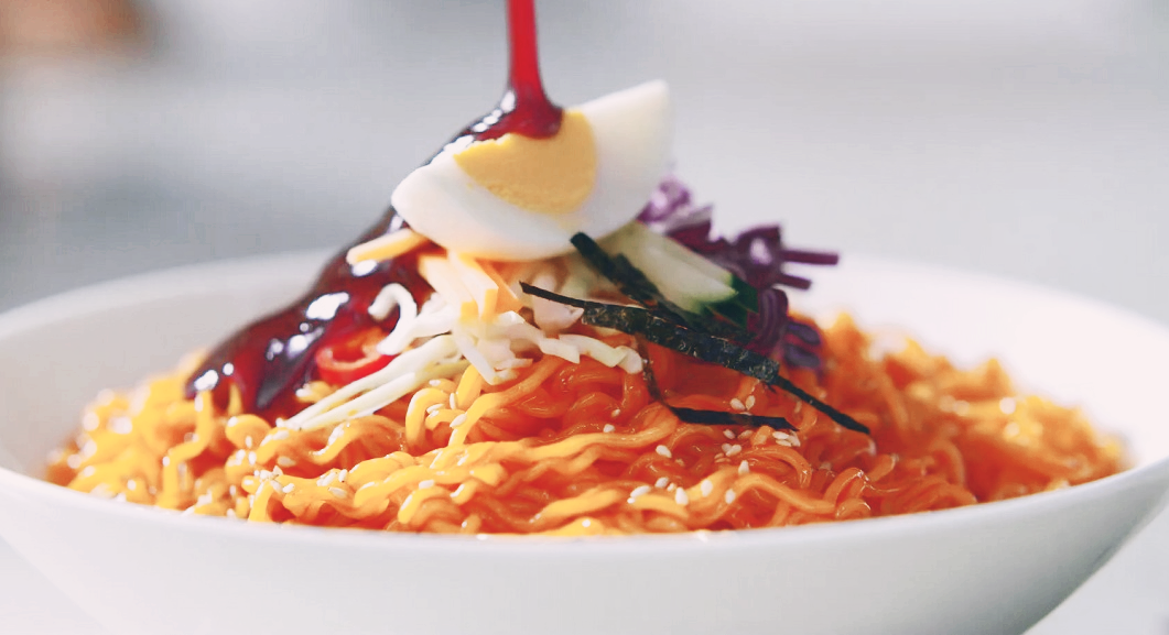 비빔면은 라면을 베이스로 만든 인스턴트 비빔국수로, 냉면이나 국수보다는 밀면에 가까운 음식이죠.