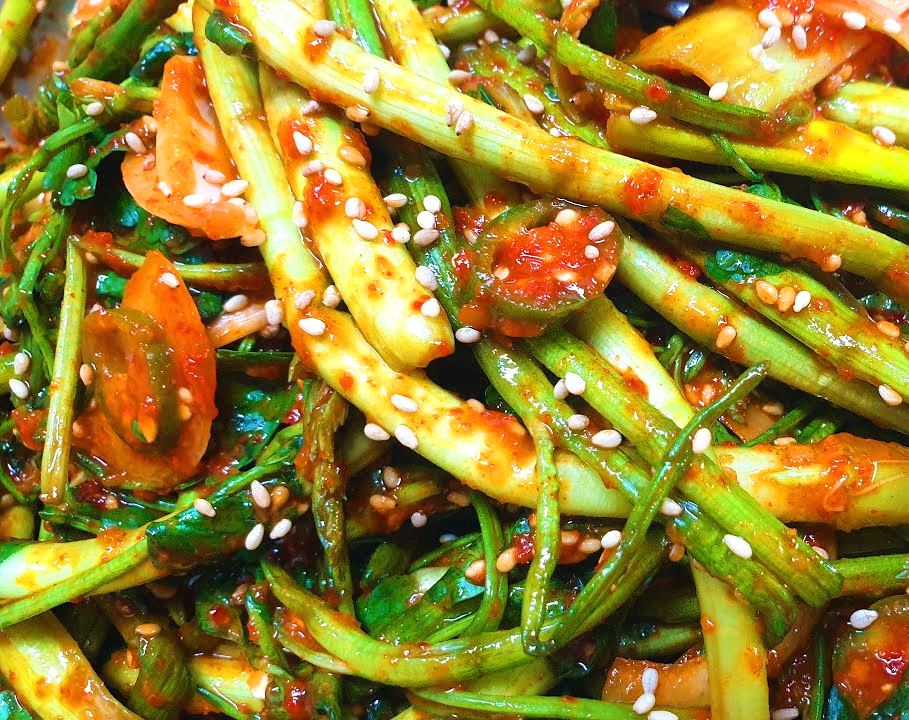 미나리는 향이 좋고 식감이 살아있어서 다양한 요리에 활용할 수 있는데요, 특히 초고추장과 함께 버무려서 먹으면 상큼하고 새콤한 맛이 일품입니다.