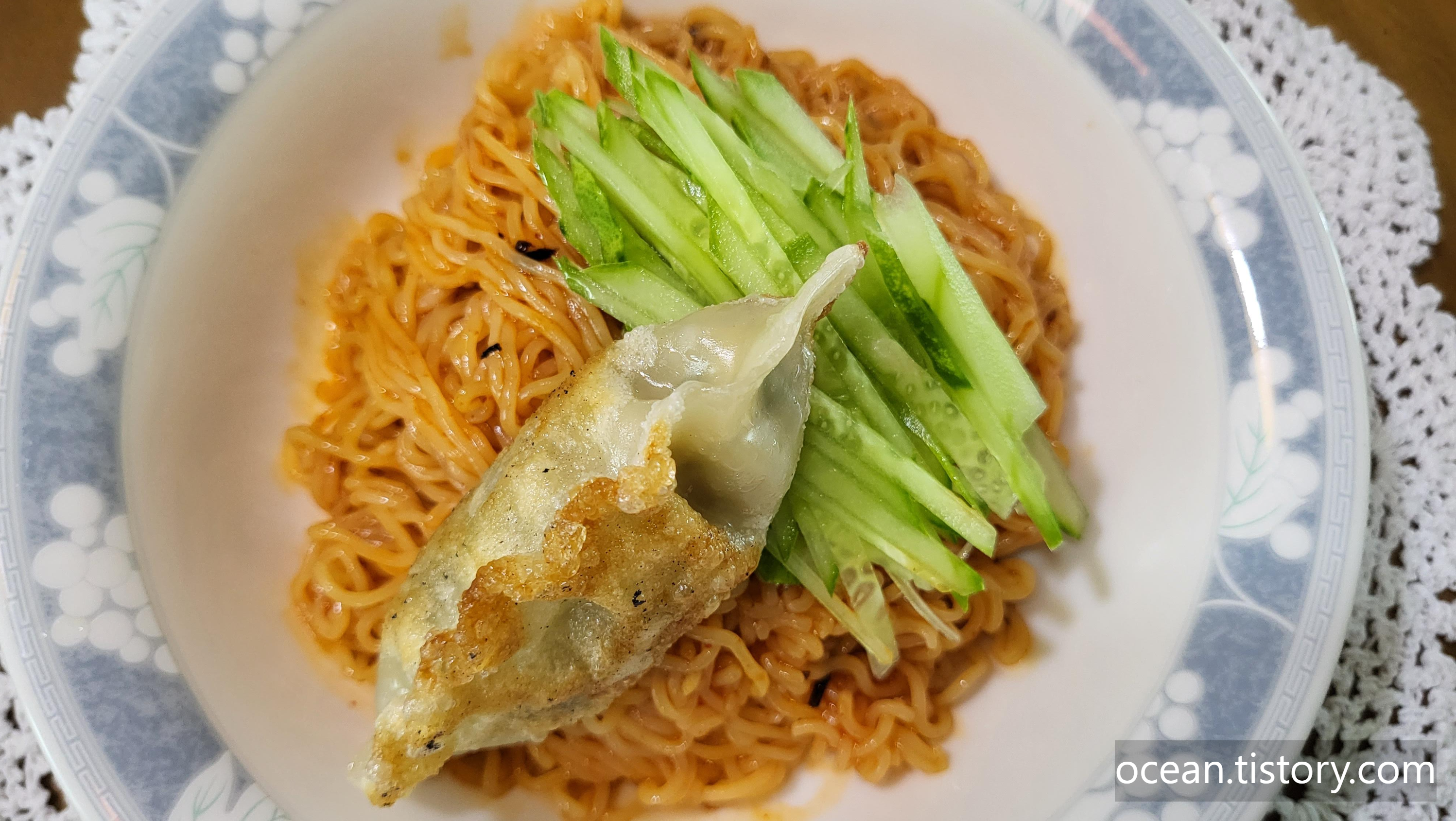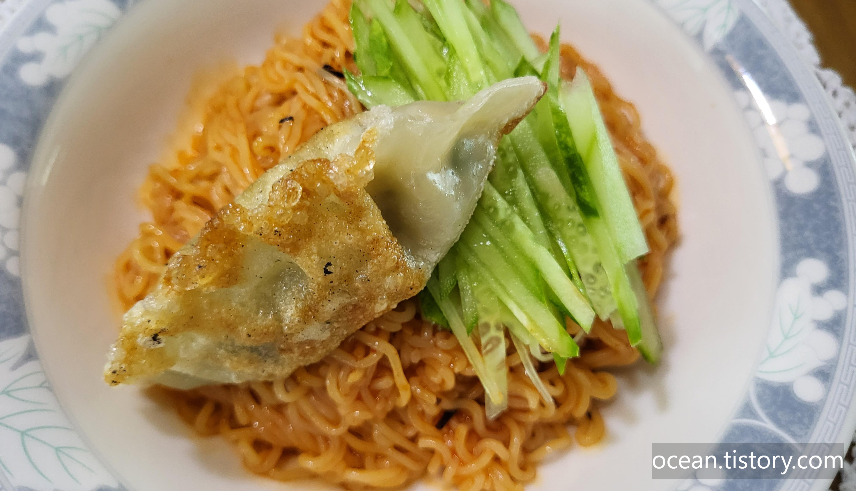 비빔면과 튀김만두