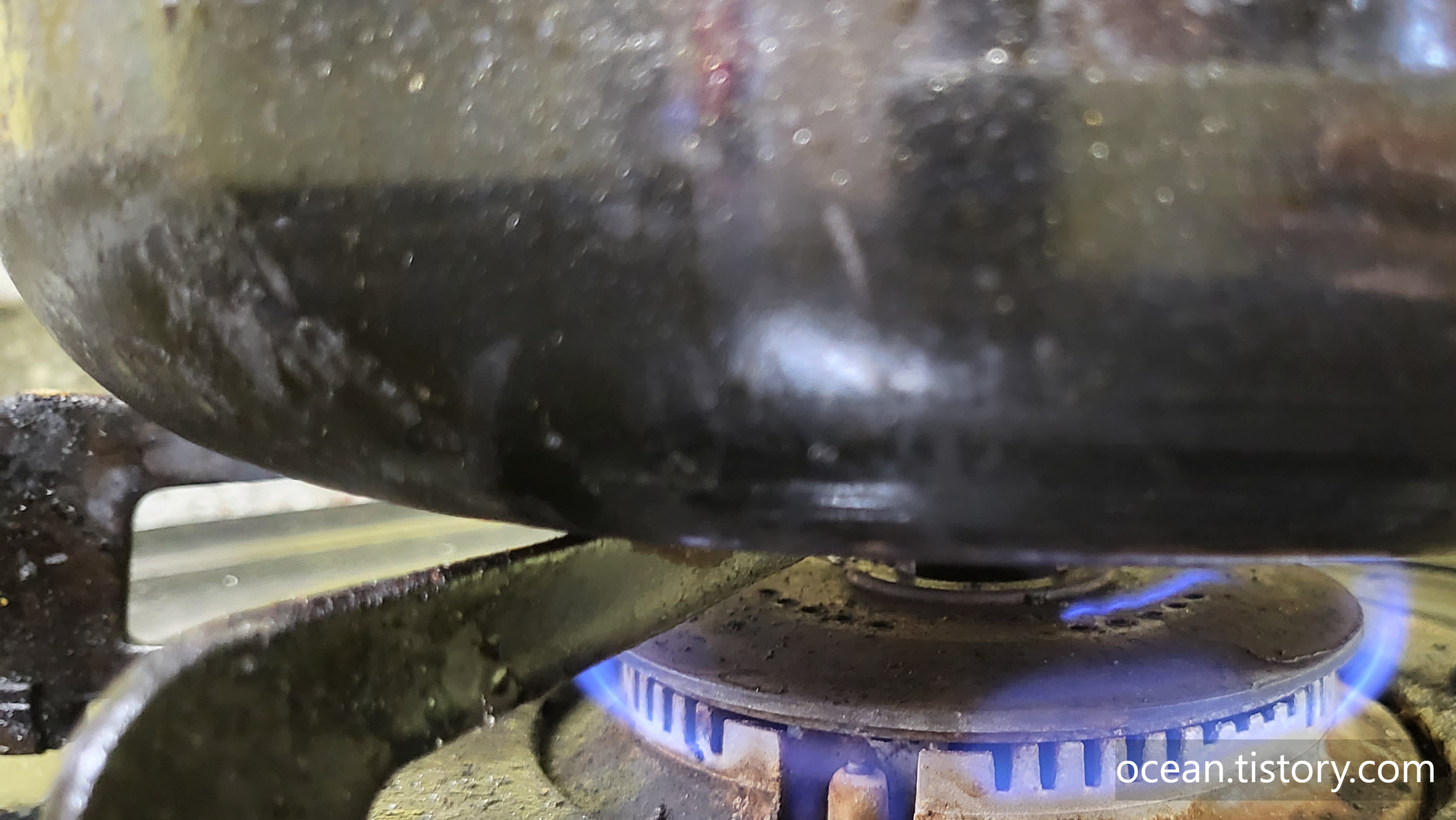 이때 프라이팬에 뚜껑을 씌운다. (중요)